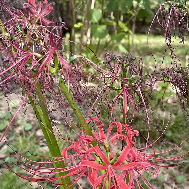 秋の景色に彩りを添えてくれた彼岸花。別名、曼珠沙華ともいう。秋を象徴する花だが、あっという間にピークを過ぎて、今はもう枯れようとしている。いつも思うが、花の命は儚いな。