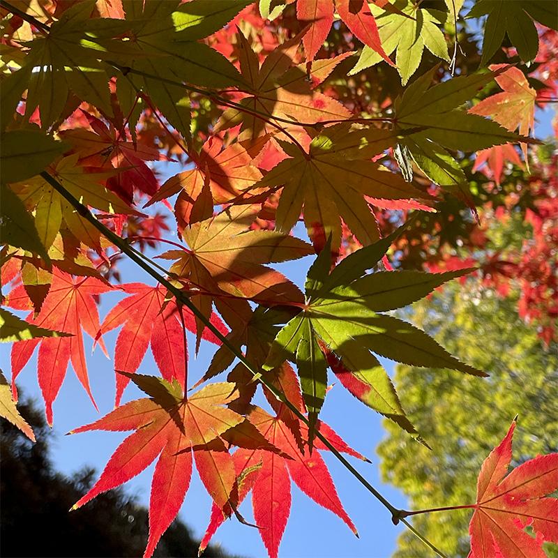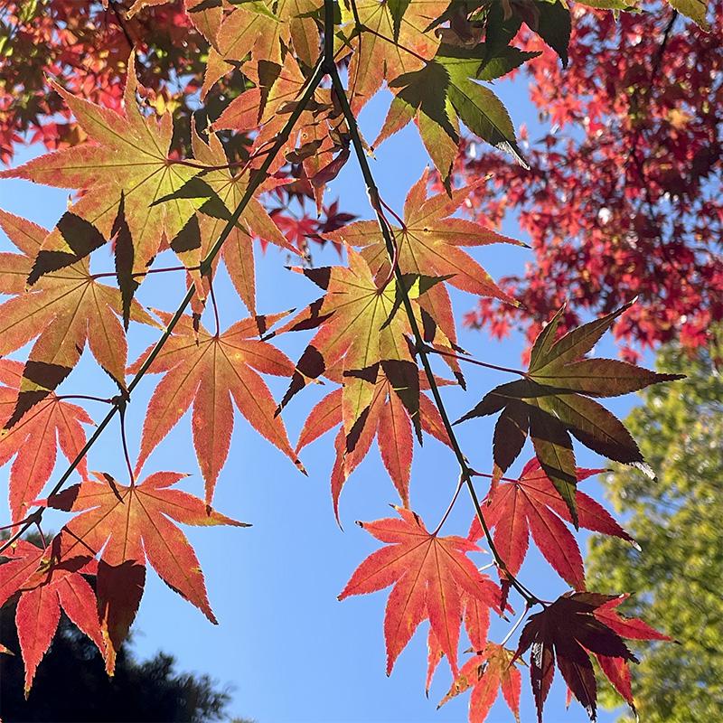 東京の紅葉も、どうやらピークを迎えたようだ。もみじが赤く染まっている。中野の紅葉山公園。木漏れ日の小径を歩くと、透過光が赤い天幕を照らすようにも見える。この時季だけの贅沢を味わっている。